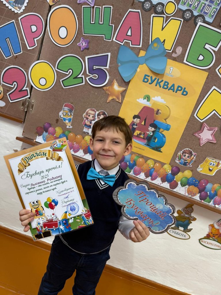 Бүгін 1-сыныпта «Әліппемен қоштасу» мерекелік іс-шарасы өтті. Бұл әсерлі де маңызды күн оқушылардың алғашқы оқу белесінің — әріптер әлемін меңгеріп, оқуға қадам басқан кезеңінің сәтті аяқталғанын білдіреді.