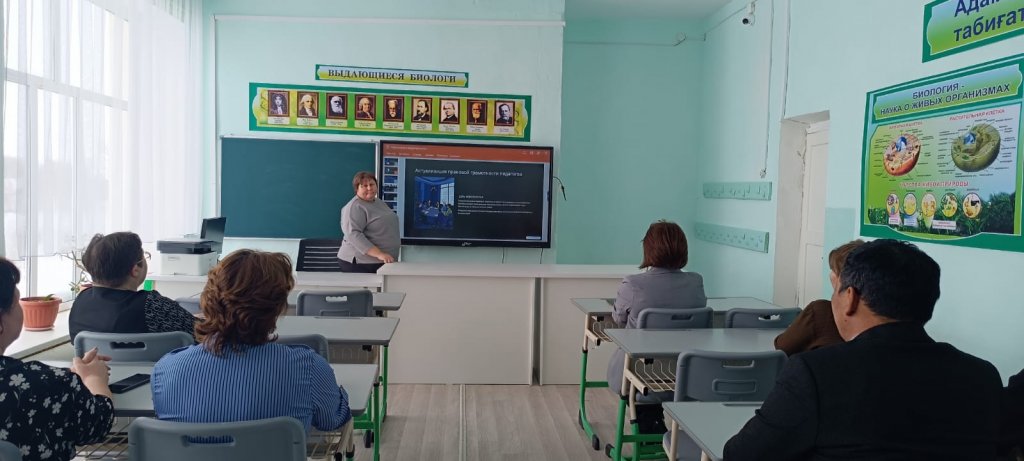 Мектепте педагогикалық қызметкерлердің құқықтық мәдениетін арттыру мақсатында «сұрақ–жауап» форматында «Конституциялық реформ: педагогтардың құқықтық сауаттылығы» тақырыбында кездесу өткізілді.Кездесу барысында Қазақстан Республикасының қолданыстағы Конституциясының негізгі ережелері, сондай-ақ референдумнан кейін енгізілетін басты өзгерістер талқыланды. Құқықтық мемлекет принциптерін бекіту, биліктің тармақтары арасындағы өкілеттіктерді бөлу, азаматтардың мемлекеттік басқаруға қатысуын кеңейту және адам құқықтарын қорғау механизмдерін күшейту мәселелеріне аса назар аударылды.Педагогтар білім беру саласындағы конституциялық құқық нормаларын қолдану, білім беру процесіне қатысушылардың құқықтары мен міндеттерін сақтау, сондай-ақ оқушылардың құқықтық мәдениетін қалыптастыруға байланысты сұрақтар қойды. Кездесу барысында мұғалімнің құқықтық сауаттылықты көрсету және Конституция нормаларын күнделікті кәсіби қызметінде қолдану үлгісі ретіндегі рөлі атап өтілді.Өткізілген кездесудің нәтижесінде педагогтардың қазіргі конституциялық процестер жөніндегі білімдері тереңдетіліп, білім беру ортасында құқықтық мәдениетті қалыптастырудың маңыздылығы айқын көрсетілді.